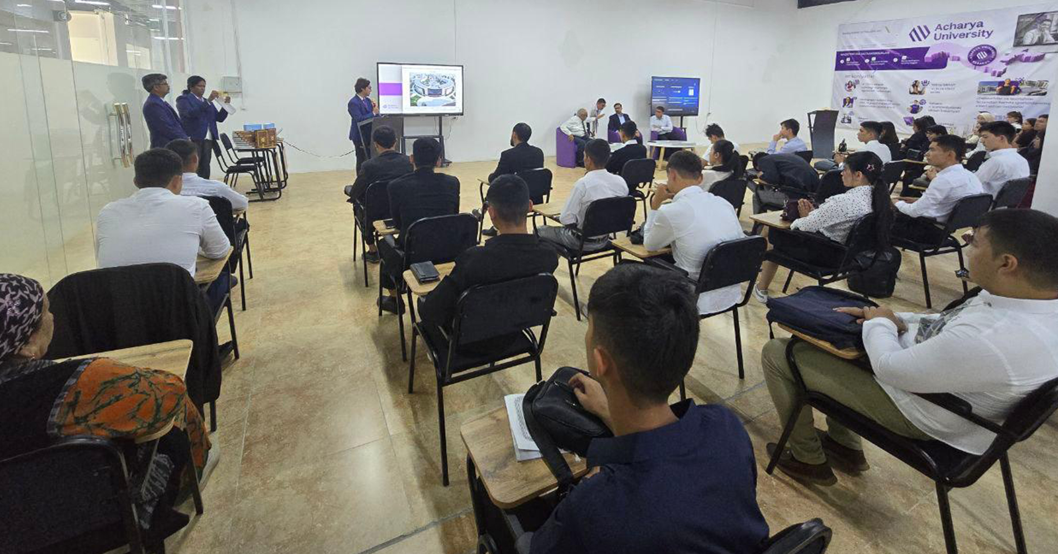Acharya University recently welcomed students from Bukhara city, in an event organized by the Youth Development Agency. This visit showcased our commitment to empowering Uzbekistan's youth through world-class IT education, bridging skill gaps, fostering innovation, providing global exposure, and ensuring inclusive education. We believe that investing in youth education shapes the future of our nation, and we were honored to inspire these students to pursue their dreams in Information Technology.