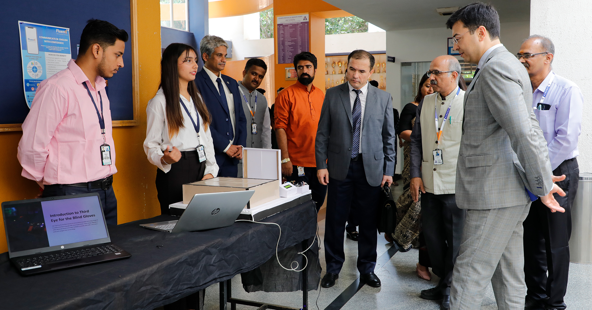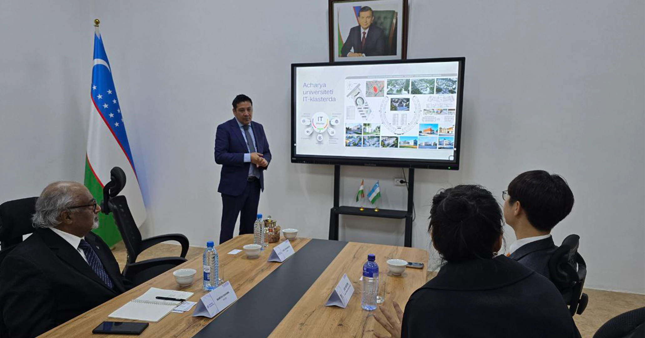 On the inaugural Raising Day, Prof. Iminov Odiljon, Chairman of the Health, Education, and Science Senate of Uzbekistan, spent 2.45 minutes with Team Acharya. He inaugurated the Industry Incubation and Innovation Cell, met World Kickboxing Champion Safarbek, and engaged with Best Teacher awardee Prof. Magesh, along with faculty members. Prof. Odiljon presented a memento to the Founder Faculty and was briefed on Acharya University by Rector Prof. Col. Rakesh Sharma. He also received an Ashok Stambh memento from the President of Acharya Group LLC and left positive remarks in the visitor's book.