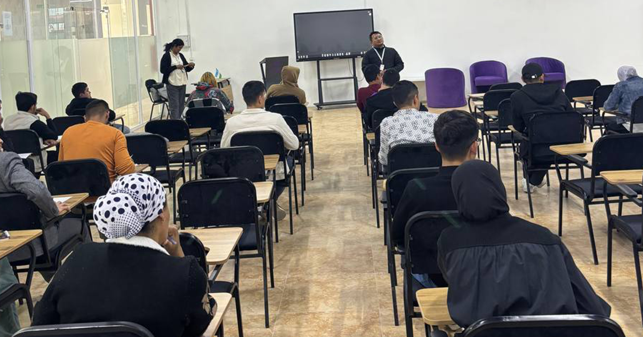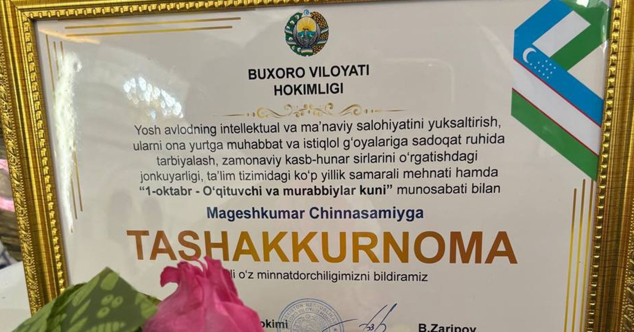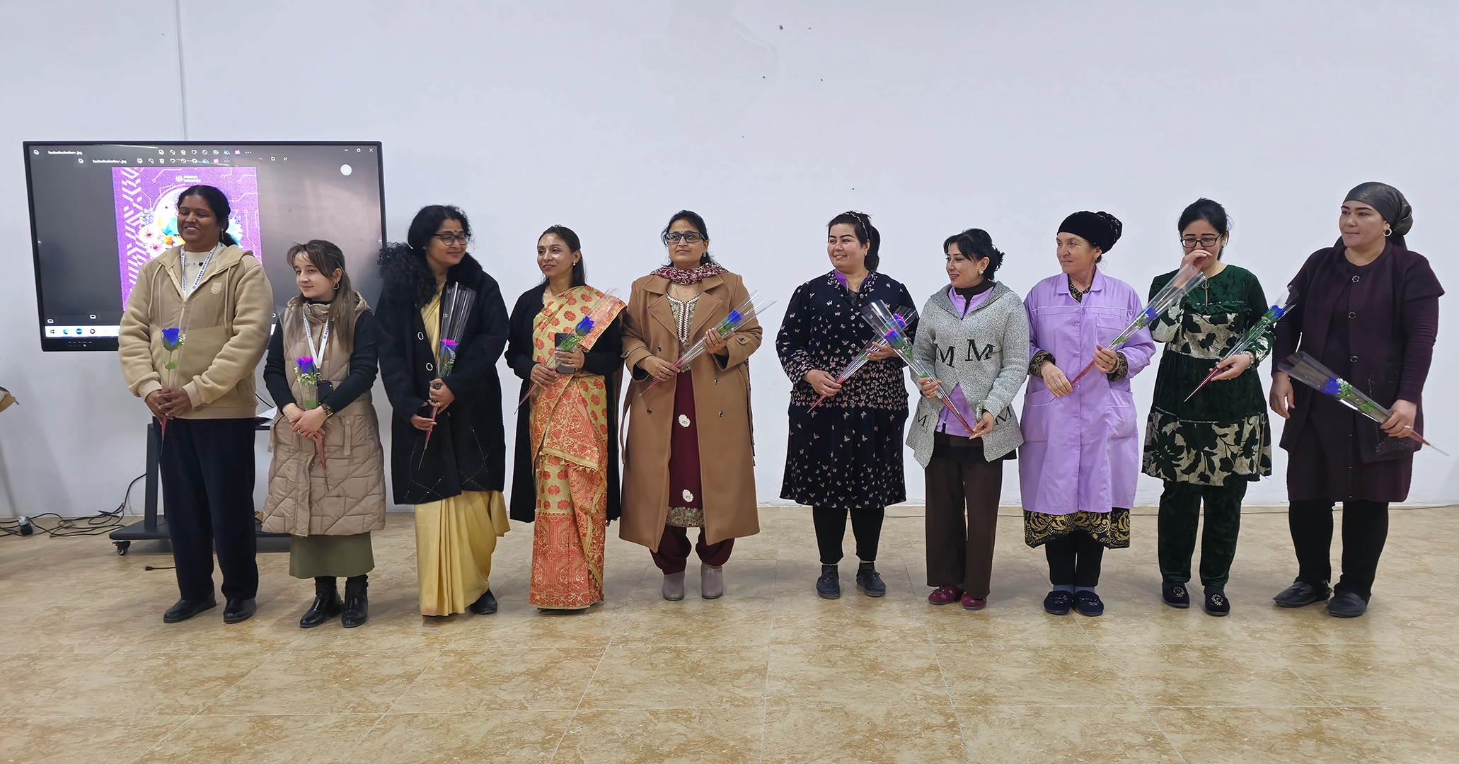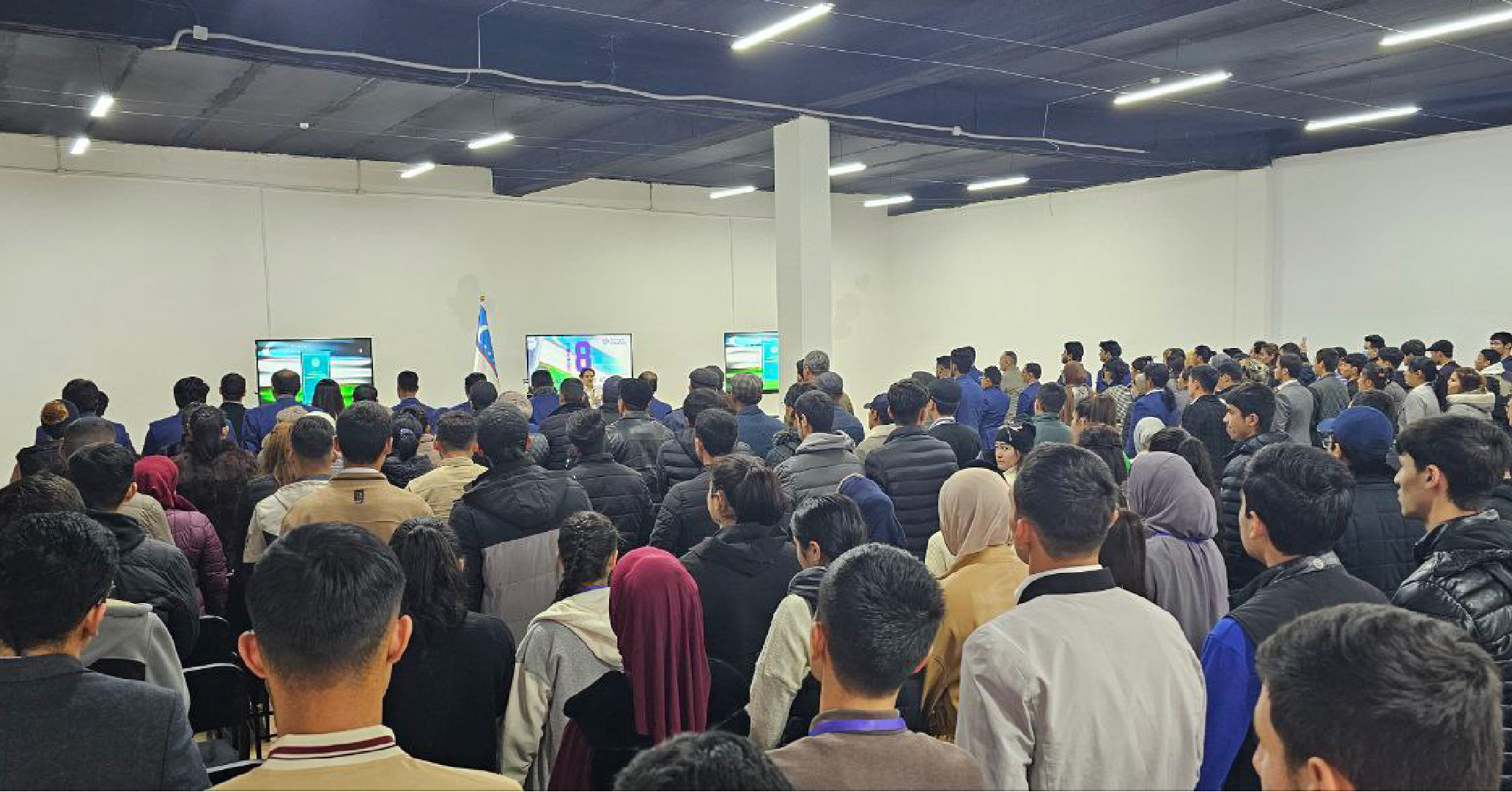 The event started with Uzbekistan's national anthem. Students came dressed up in uniform. The importance of the day was briefed. The students gave a group dance performance.